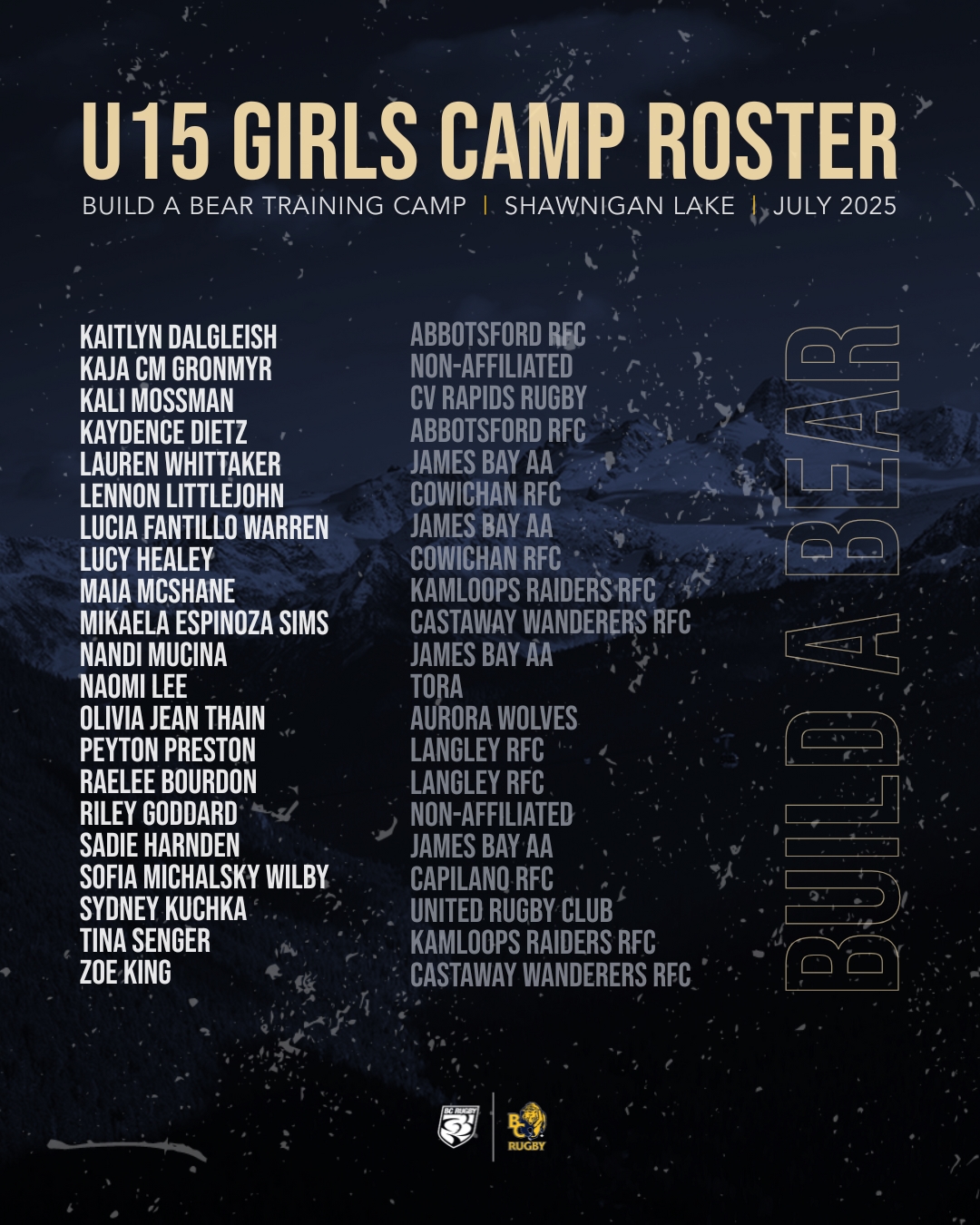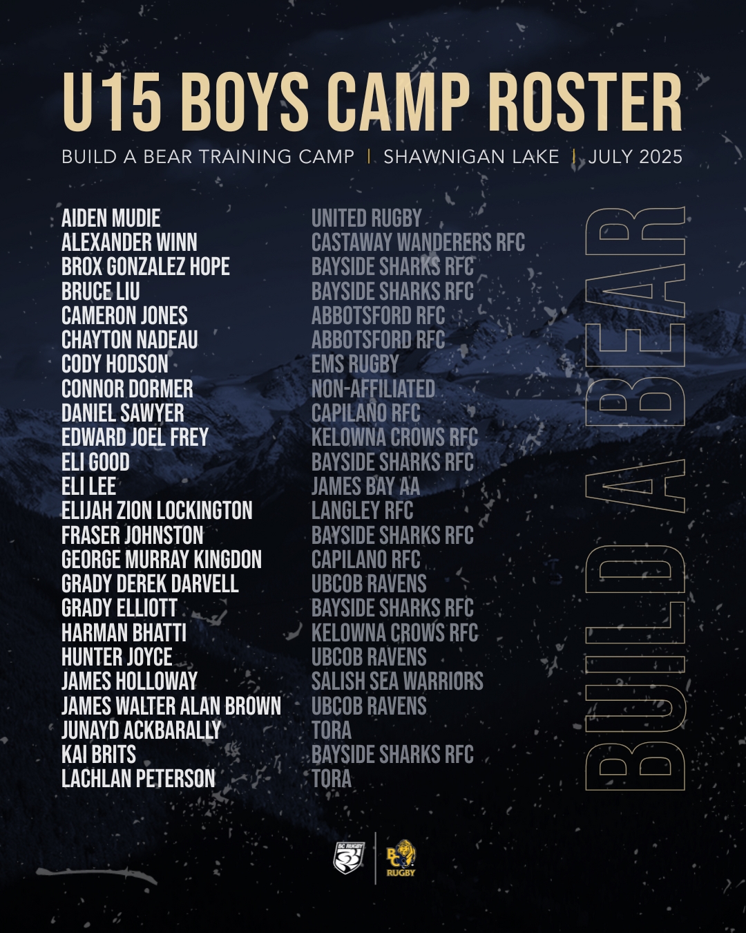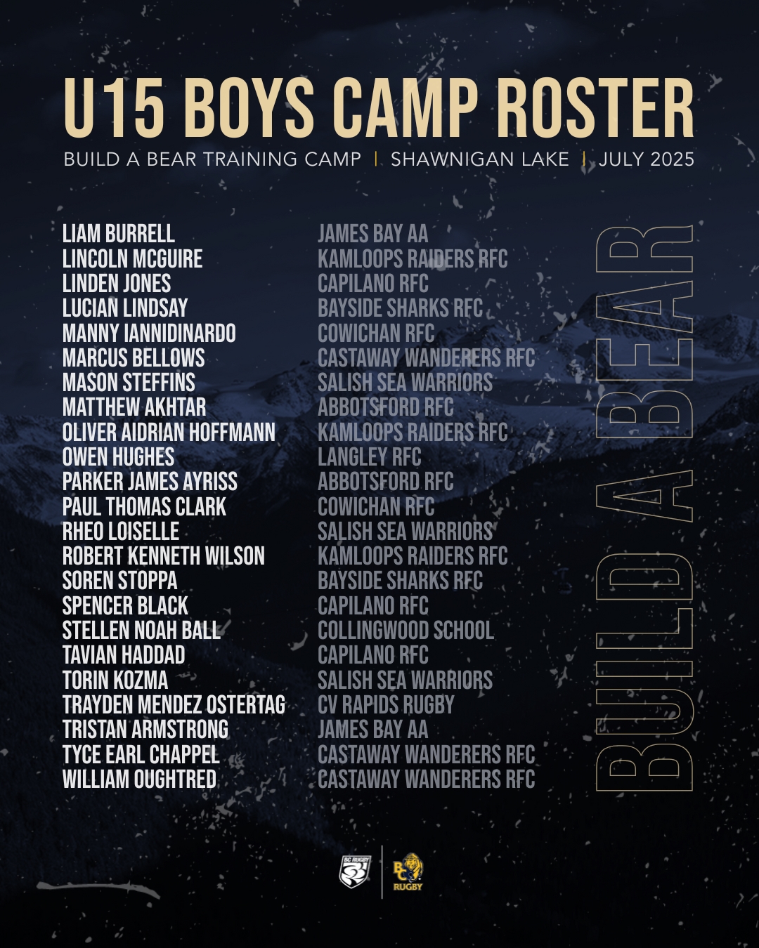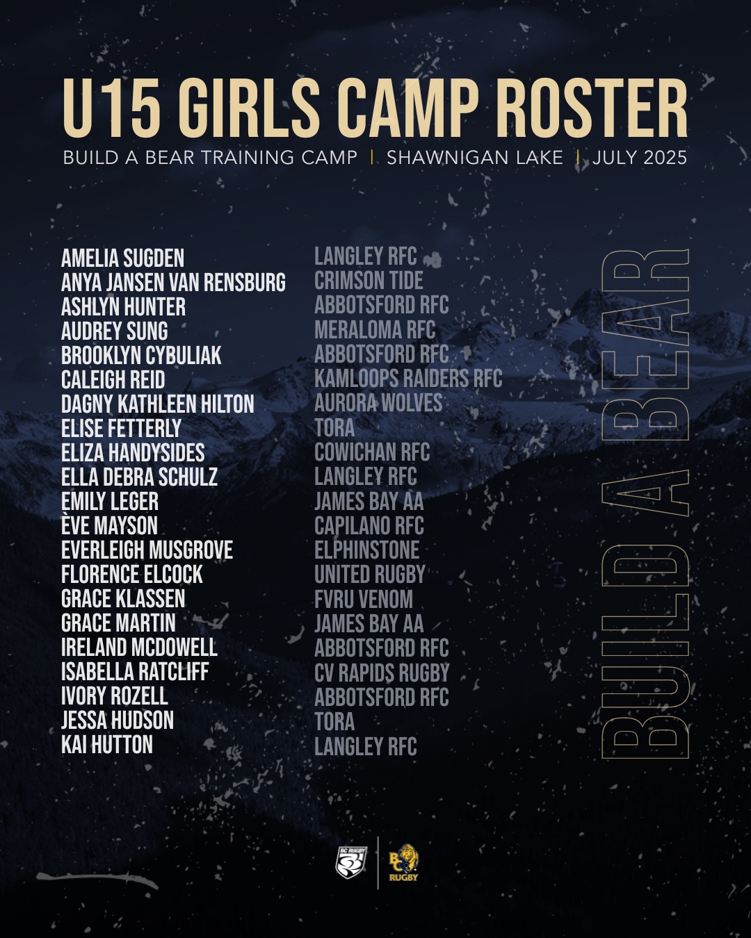 BC Rugby is delighted to announce the athletes who will take part in the 2025 Build a Bear U15 Boys and Girls Training Camps at Shawnigan Lake School on July 27-August 1.