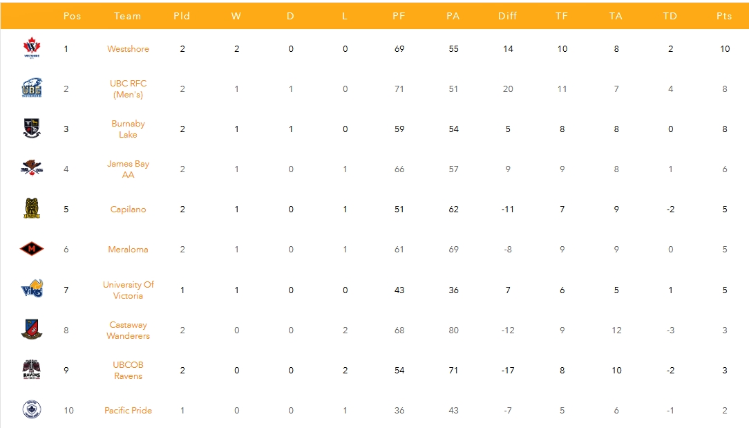 There are four matches in the men’s Premier this weekend, Week 3. The UBC vs UVic Premier match is also a National University Qualifier and part of the Wightman Boot competition between the two universities. The Pacific Pride are playing an exhibition against Seattle. The women’s Premier kicks off with two matches, there was supposed to be three but the Ravens v Thunderbirds match has been marked as cancelled. The Ravens apparently haven’t been able to put together a women’s Premier team at the time of writing. We’ll have our predictions article out tomorrow when we have the rosters for the weekend. The current Week 2 standings are posted below.