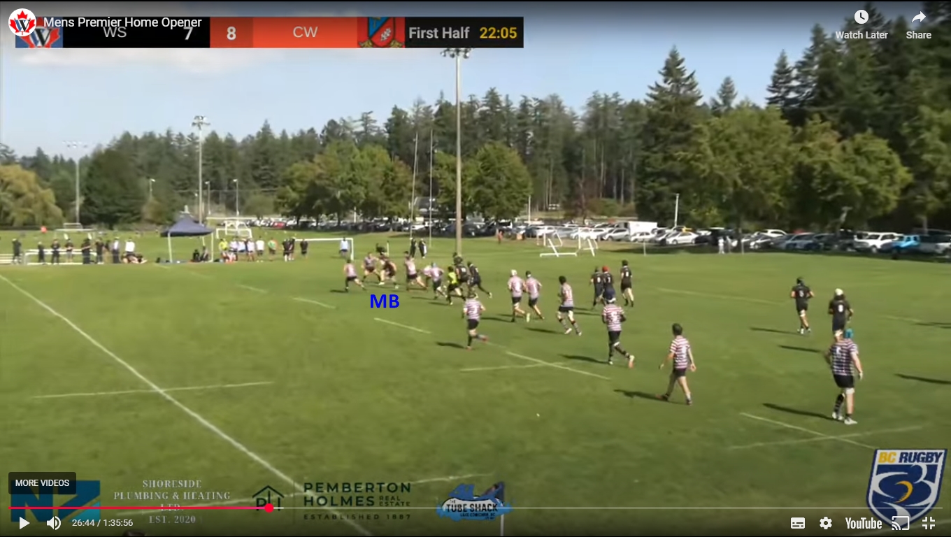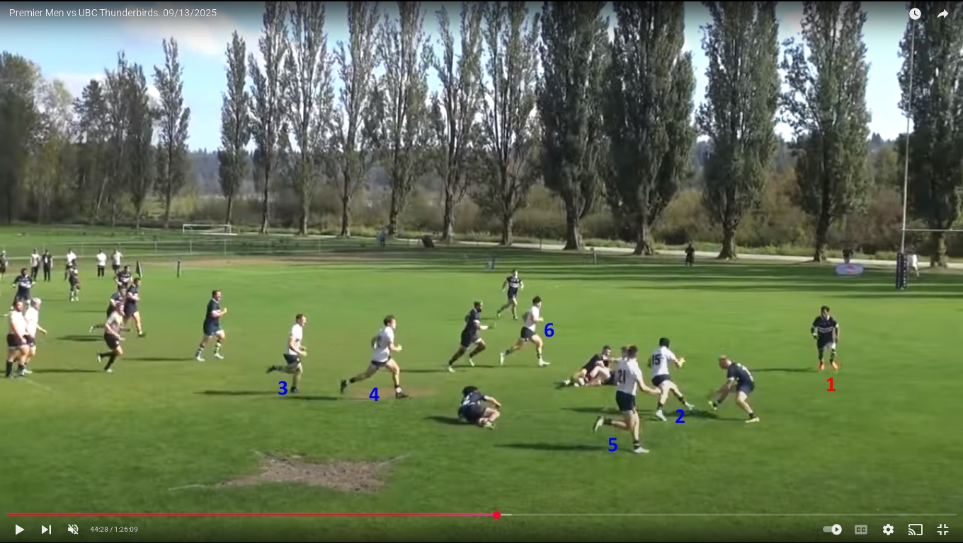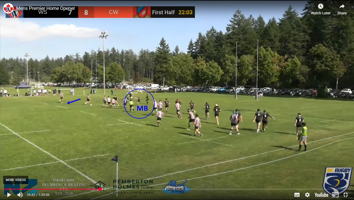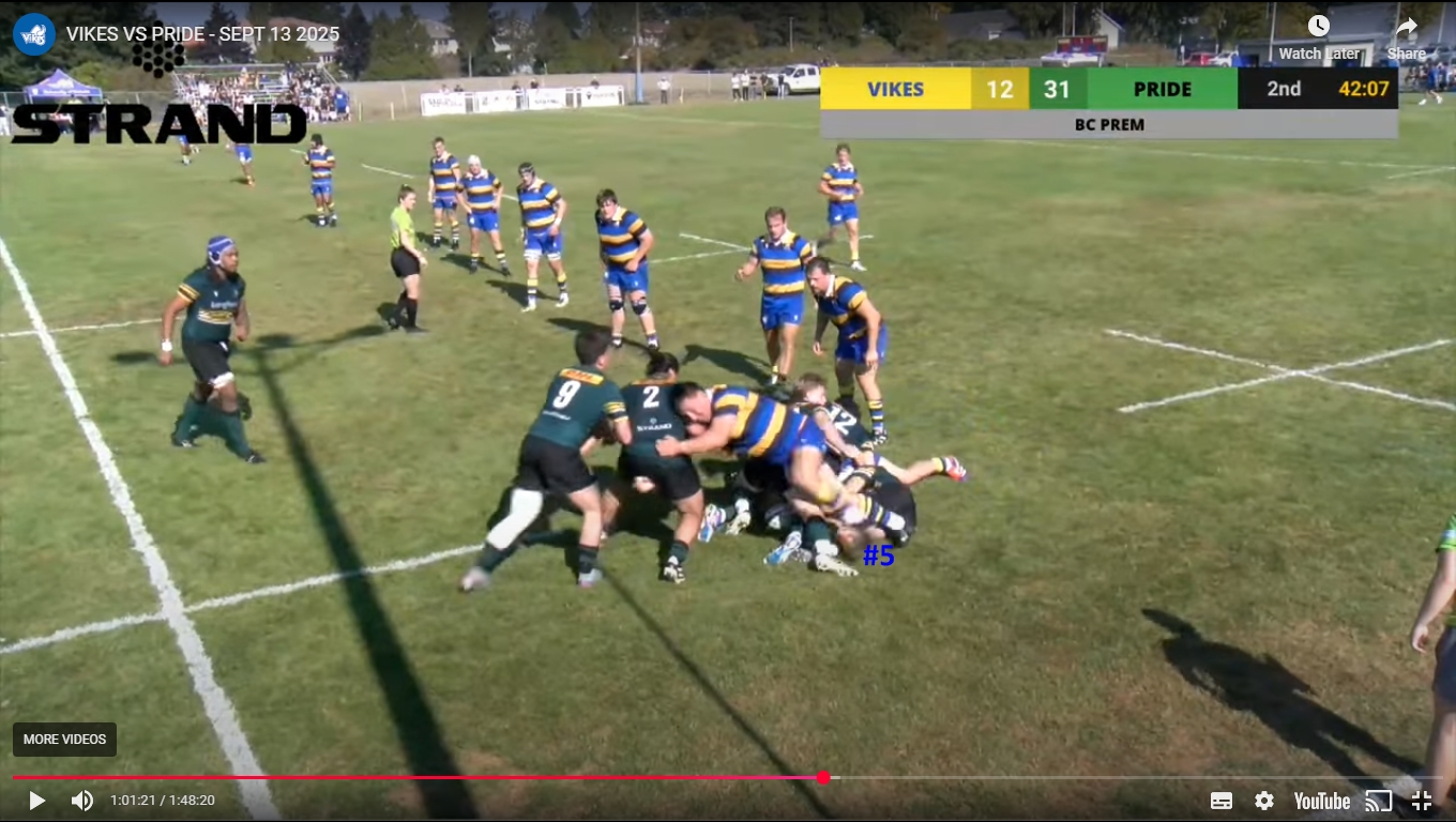 We had a chance to review the match footage of 3 games that were put up on YouTube, kudos to Westshore and UVic for putting up the live streams and archives of the matches, and to Burnaby for putting up the match video post game. We selected a few screen captures from the videos to highlight some outstanding performances. You can view the timestamp on the screen captures to watch on the videos which are included below. The players featured from Week 1 are Burnaby #10 Napolioni Bolaca, Westshore #10 Mark Balaski, UVic’s second row Brendan Kim and centre Morgan di Nardo. All Week 1 impact players.