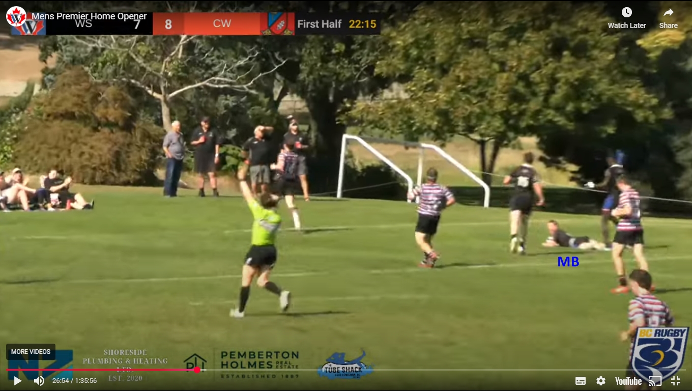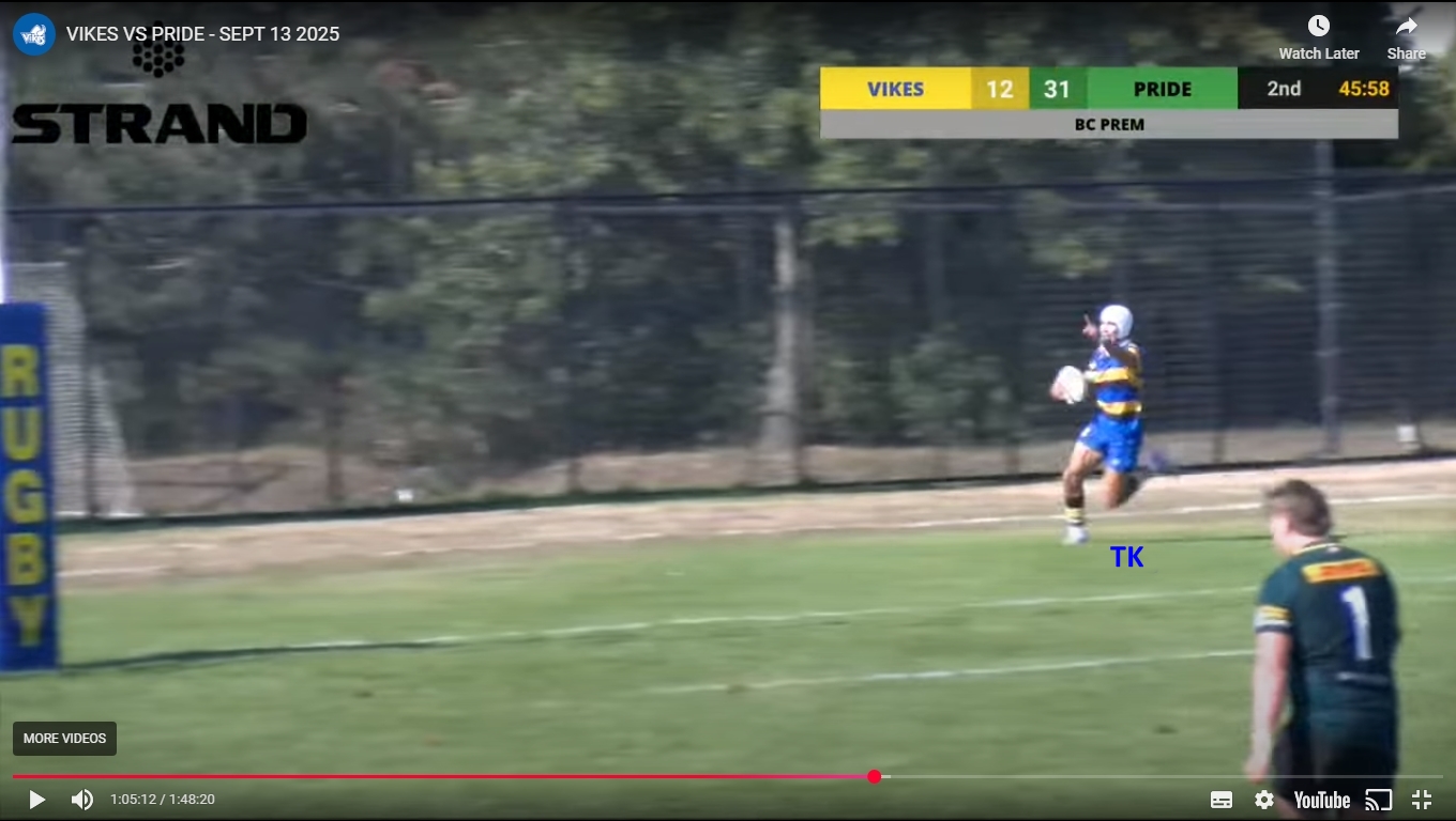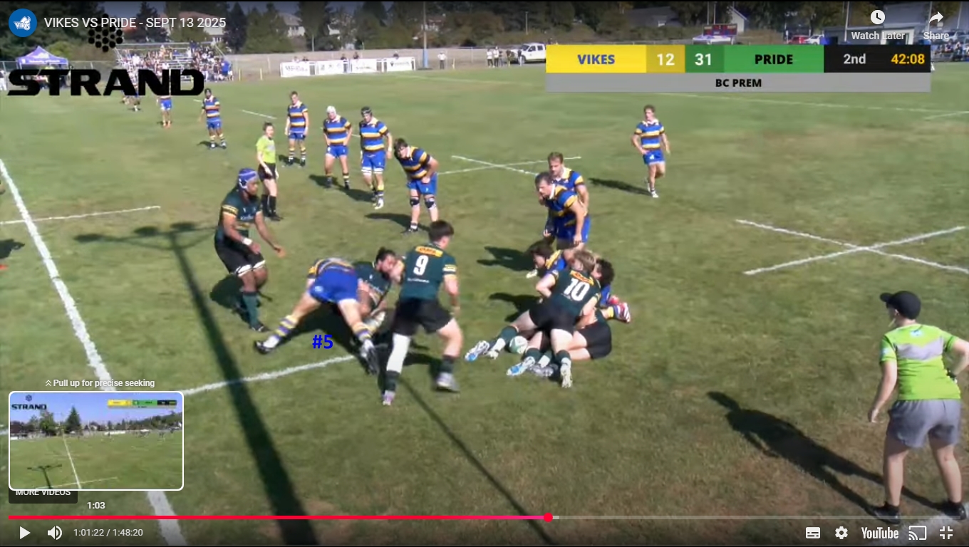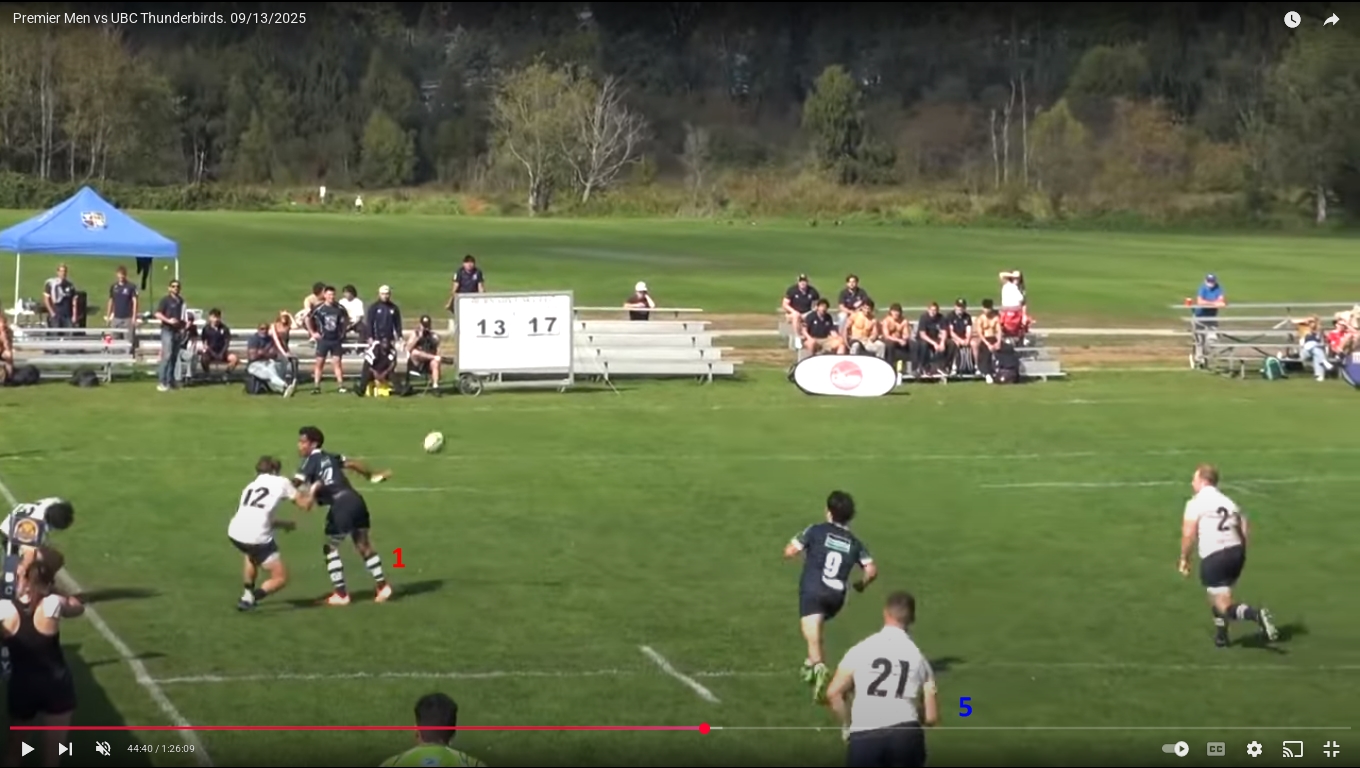 We had a chance to review the match footage of 3 games that were put up on YouTube, kudos to Westshore and UVic for putting up the live streams and archives of the matches, and to Burnaby for putting up the match video post game. We selected a few screen captures from the videos to highlight some outstanding performances. You can view the timestamp on the screen captures to watch on the videos which are included below. The players featured from Week 1 are Burnaby #10 Napolioni Bolaca, Westshore #10 Mark Balaski, UVic’s second row Brendan Kim and centre Morgan di Nardo. All Week 1 impact players.