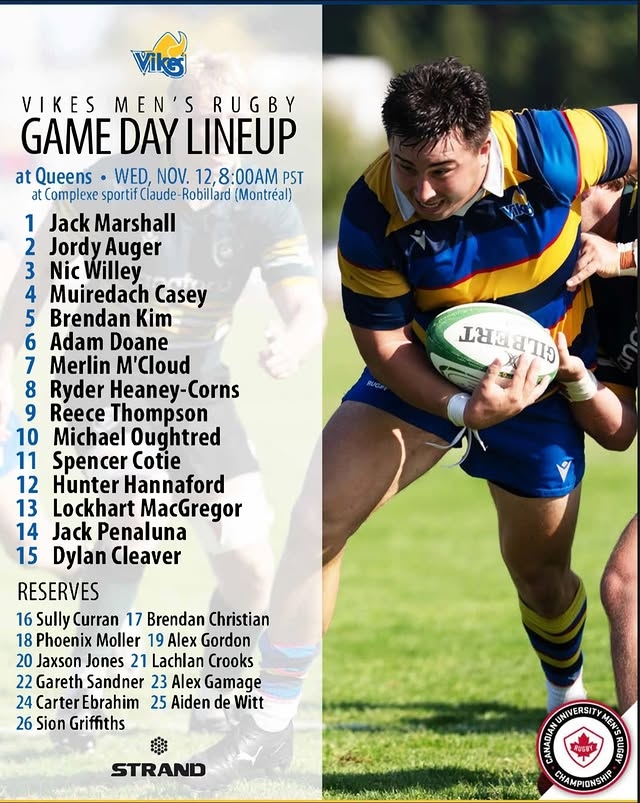 The Vikes will play their provincial rivals, the University of British Columbia, for the bronze medal on Nov. 16 at 12:00 p.m. PT.