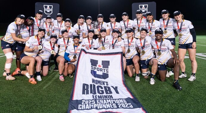 UBC repeat as U SPORTS champions with a last minute win over UVic. UVic went up 3-0 in the first quarter on a penalty kick, UBC scored the first try set up by a strong run by prop Kiki Idowu and finished off by fullback Olivia Saraburu, 7-3 for UBC. UBC added a penalty in the second half to go up 10-3. UVic hit back with a halfback combination try, #9 Justine Blatt Janmaat with the line break and offload to #10 Ella O’Regan, 10-8 for UBC with 20 minutes left. UVic wing Eden Kilgour put UVic ahead with a try outside with 5 minutes left, 13-10 for UVic. UBC scored at the whistle, a try outside by wing Adia Pye, 15-13 UBC to end the match
