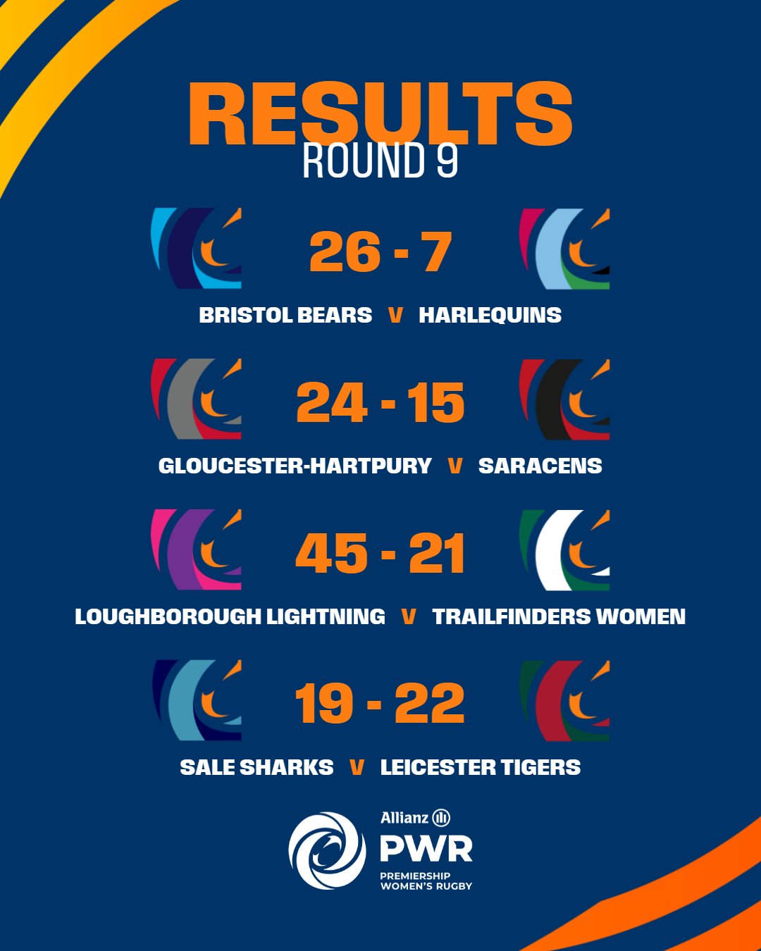 Elsewhere, Bristol Bears beat Harlequins and Loughborough Lightning turned over Trailfinders in a 10-try thriller.