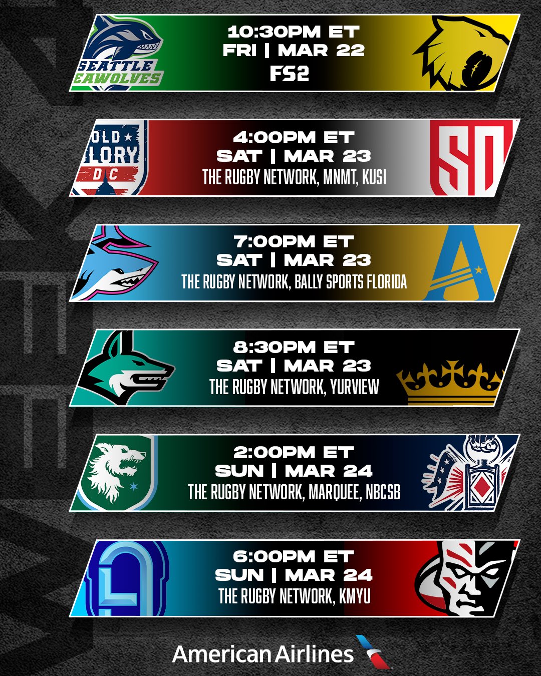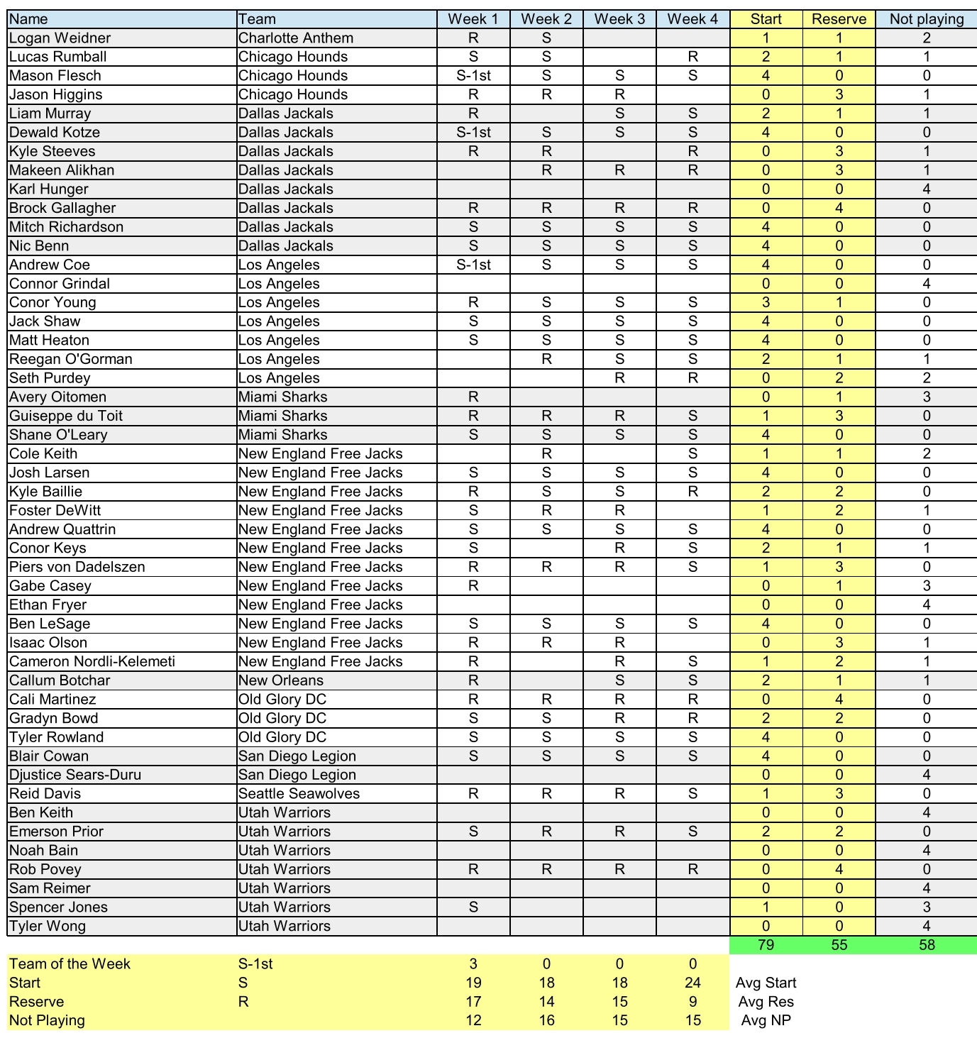 Tyler Rowland with the start for DC with Gradyn Bowd and Cali Martinez in the reserves. For San Diego Canada-eligible Blair Cowan started and was top tackler for the Legion.