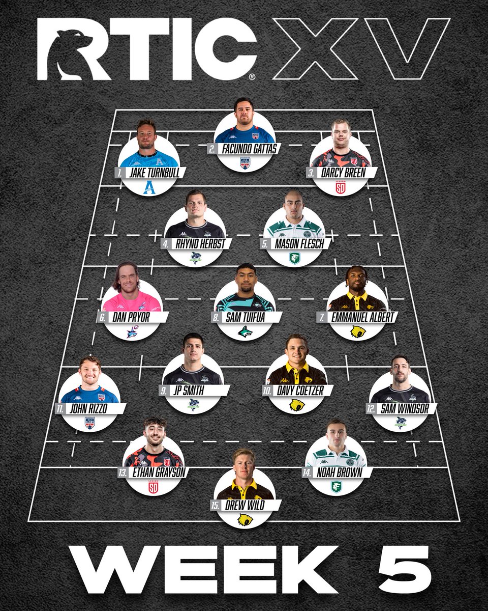 With only four matches this weekend it was the lowest number of Canadians playing this season, 8 starters, 7  in reserve for a total of 15 in action. There are four players who have been starters in all 5 weeks, Mason Flesch for Chicago and Dewald Kotze, Mitch Richardson and Nic Benn for Dallas.