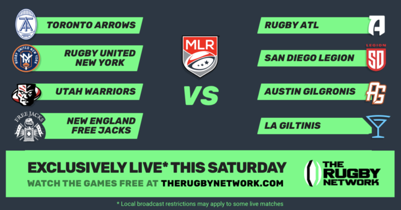 The Rugby Network a collaborative effort between MLR and RugbyPass, the service owned by Sky Sport NZ, will provide live streaming of four MLR matches this weekend. The Toronto v Atlanta match will be blacked out in Canada since TSN will provide the live feed on TSN 2. Here is Saturday’s schedule with the Live Stream matches indicated.