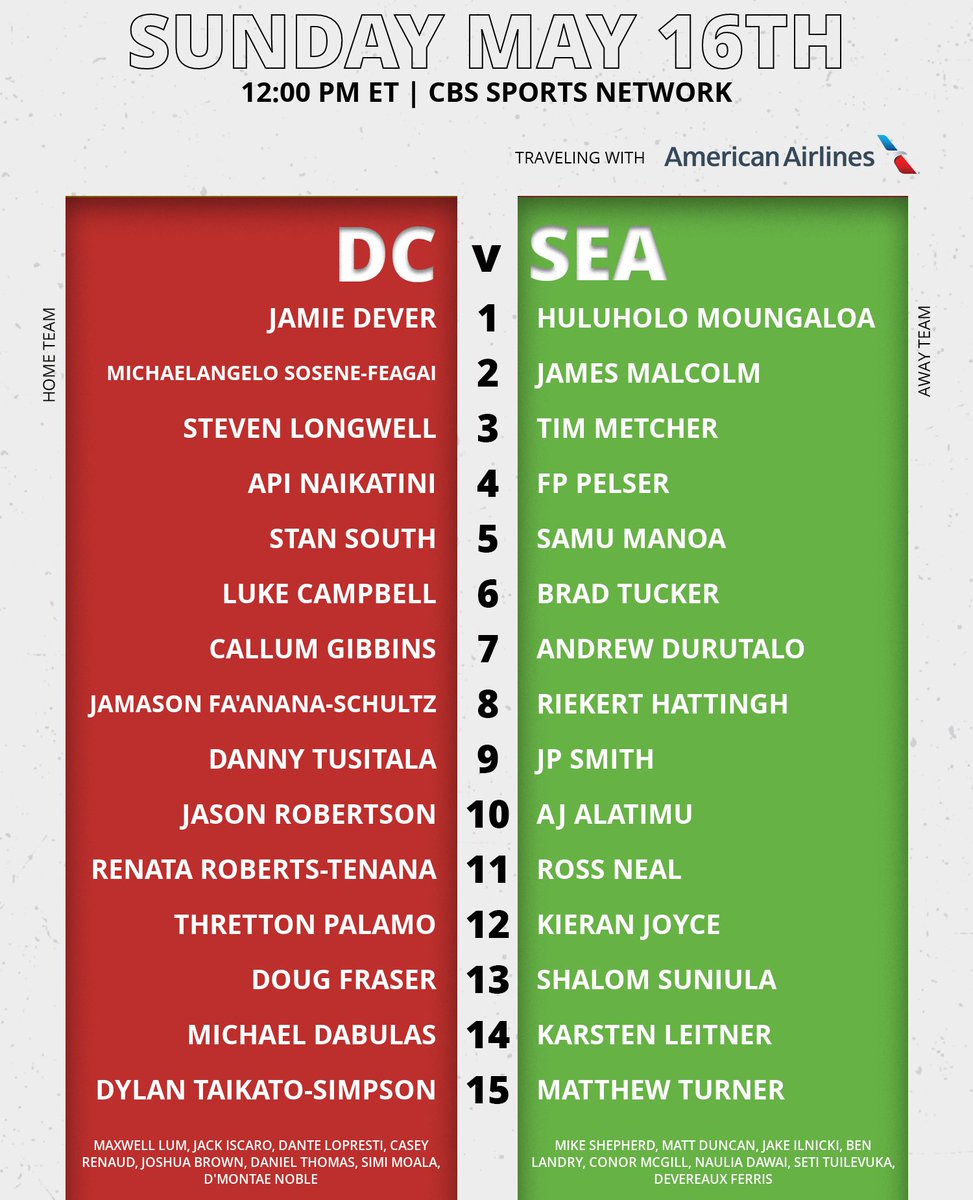 Luke Campbell gets the start at blindside for DC with Doug Fraser at centre. Seattle only has one Canadian in the roster, Jake Ilnicki, as reserve prop.