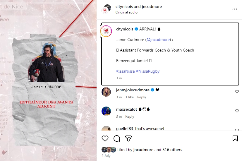Congratulations to Jamie Cudmore and Josh Thiel on new appointments in French rugby. Jamie has been announced as a Forwards Coach at Nissa Rugby, formerly called Stade Niçois Rugby. They were relegated last season from Pro D2, and will be playing in Nationale for 2025/26. They’ll no doubt be looking for promotion back to Pro D2 next season. Josh Thiel picked up a contract in French rugby playing for AS Monaco, they play in Fédérale 2 and just missed out on promotion to Fédérale 1, no doubt a goal for the upcoming season.