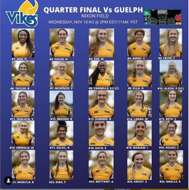 UVic has already played and gone through to the semis with a 21-10 win over Guelph in the quarter-finals. Player of the Match for the Vikes selected by USports was #8 Chanelle Edwards-Challenger.